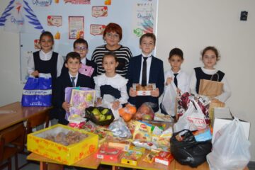 Также от имени всех учащихся, их родителей и педагогов были собраны гостинцы для наших старших: конфеты, фрукты, печенье, соки и сладости.