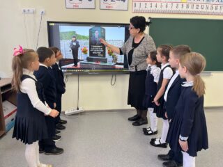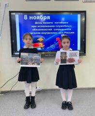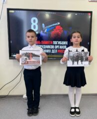 Также в 1″В», 4″А», 5″Б», 5″ Д» классах прошел тематический классный час, где дети подробнее узнали о героях-сотрудниках, погибших при исполнении служебных обязанностей.