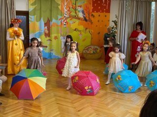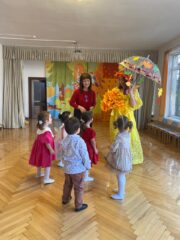 В гости к детям пришла «Осень». Ребята с удовольствием читали стихотворения, исполняли различные песни и танцы, водили хороводы, разыгрывали театральные сценки. Самым ярким и запоминающимся эпизодом во всех утренниках стал сюрпризный момент – гостинцы для всех ребят – подарок осени!