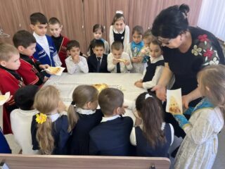 Самым вкусным моментом праздника стали три пирога! В классе было обсуждено, что три пирога на столе — это очень важный символ: они означают Бога, Солнце и Землю.