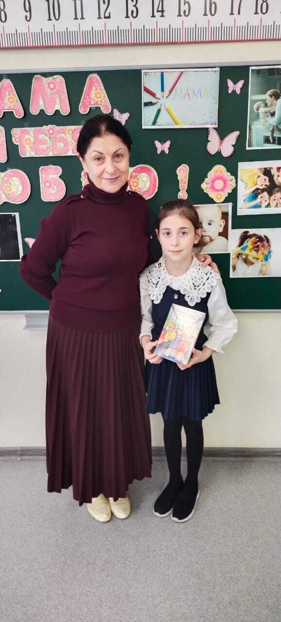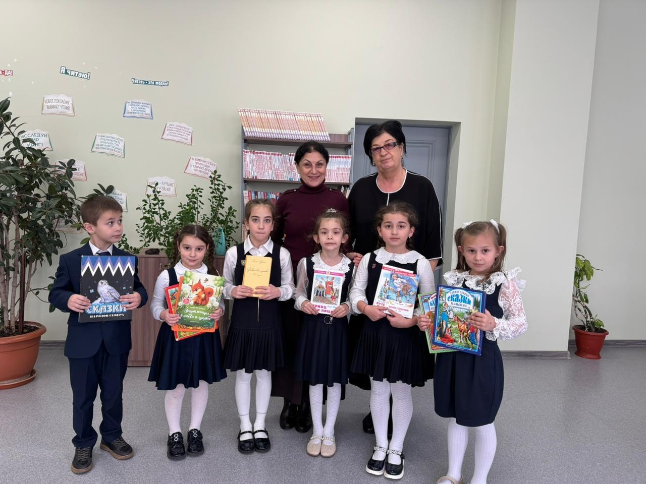 Ребята с большим теплом и старанием прочитали стихотворение для мам, создав по-настоящему трогательную атмосферу. В знак благодарности и уважения ученики подарили библиотеке книжки «По страницам любимых книг» и вручили их Гуриевой Марине Иналовне.