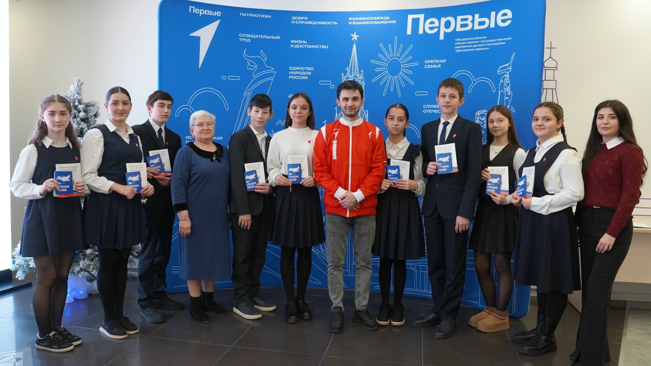 В преддверии празднования Нового 2026 года на базе Штаба общественной поддержки «Единой России» учащиеся 8 «А» и 8«Б» классов приняли участие в торжественном вручении паспортов. Мероприятие было подготовлено и проведено региональным отделением Движения Первых РСО-Алания в рамках Всероссийского проекта «Мы — граждане России»