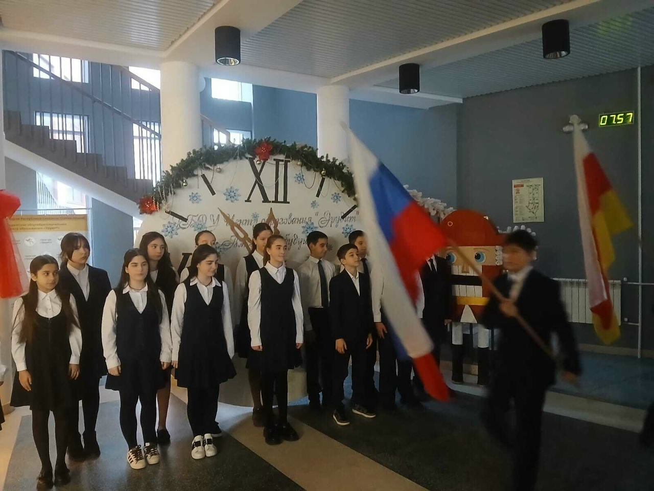 Третья четверть в нашем Центре образования началась с поднятия государственного Флага Российской Федерации и исполнения Гимна России и Республики Северная Осетия Алания. Эта ответственная задача была возложена на учеников 7 «В»класса, с которой они прекрасно справились.