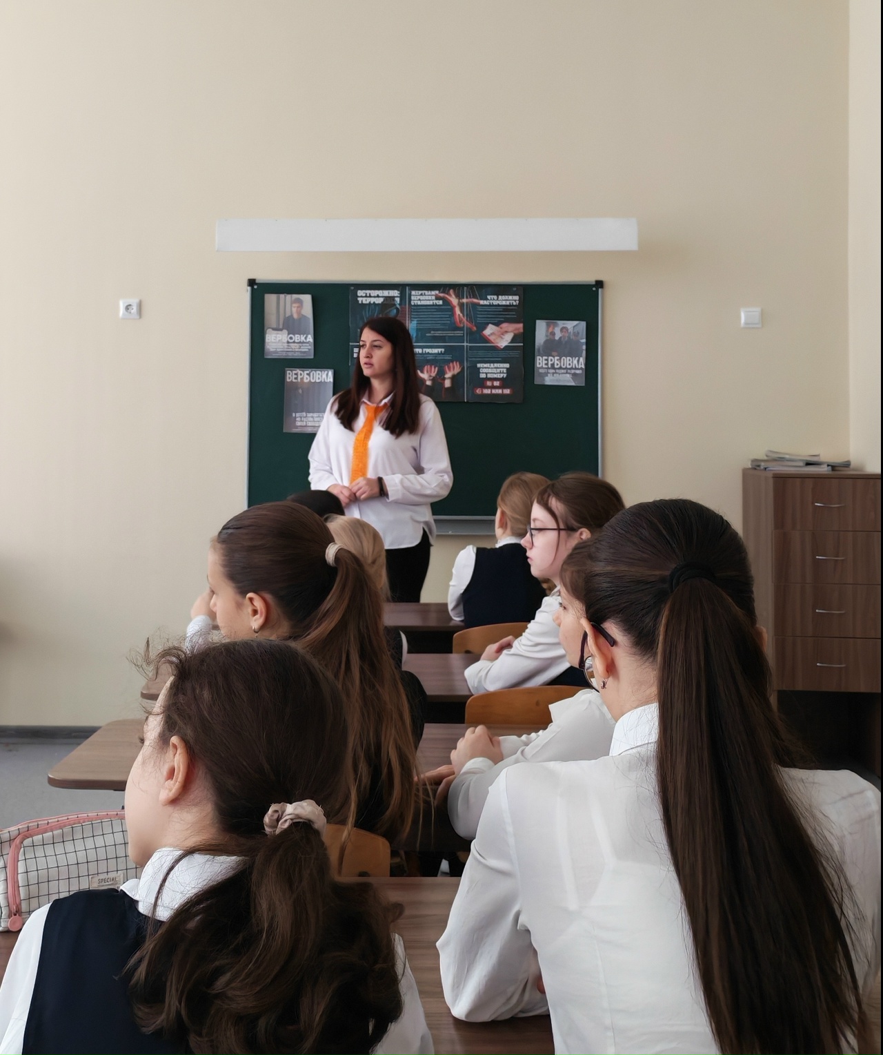 С учащимися проведены беседы о деструктивных идеях и методах вербовки, включая признаки и цели деструктивных сообществ, психологические приемы манипулирования, особое внимание уделено интернет-пространству. Рассмотрены примеры вербовки, стратегии противостояния, важность критического мышления, проверки информации и сохранения индивидуальности.