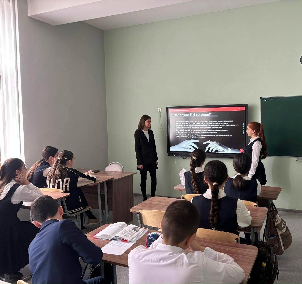 В ходе занятия шестиклассники узнали о базовых принципах работы искусственного интеллекта и нейронных сетей, а также о том, как они могут быть использованы в образовательных и повседневных целях. Были приведены примеры конкретных ИИ-инструментов, способных помогать в учебе, поиске информации и творческой деятельности.