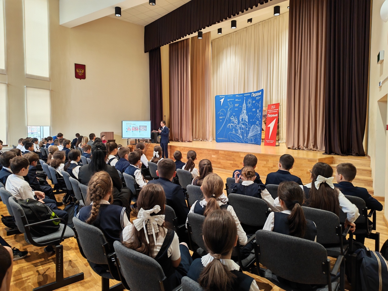 В ГБОУ ЦО Эрудит, в актовом зале школы состоялось одно из самых волнующих и значимых событий года – торжественная церемония посвящения обучающихся в ряды Общероссийского общественно-государственного движения детей и молодёжи «Движение первых».
