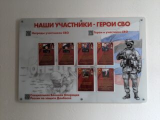 Второй стенд посвящен жителям Северной Осетии — мобилизованным и добровольцам, участвующим в СВО.
