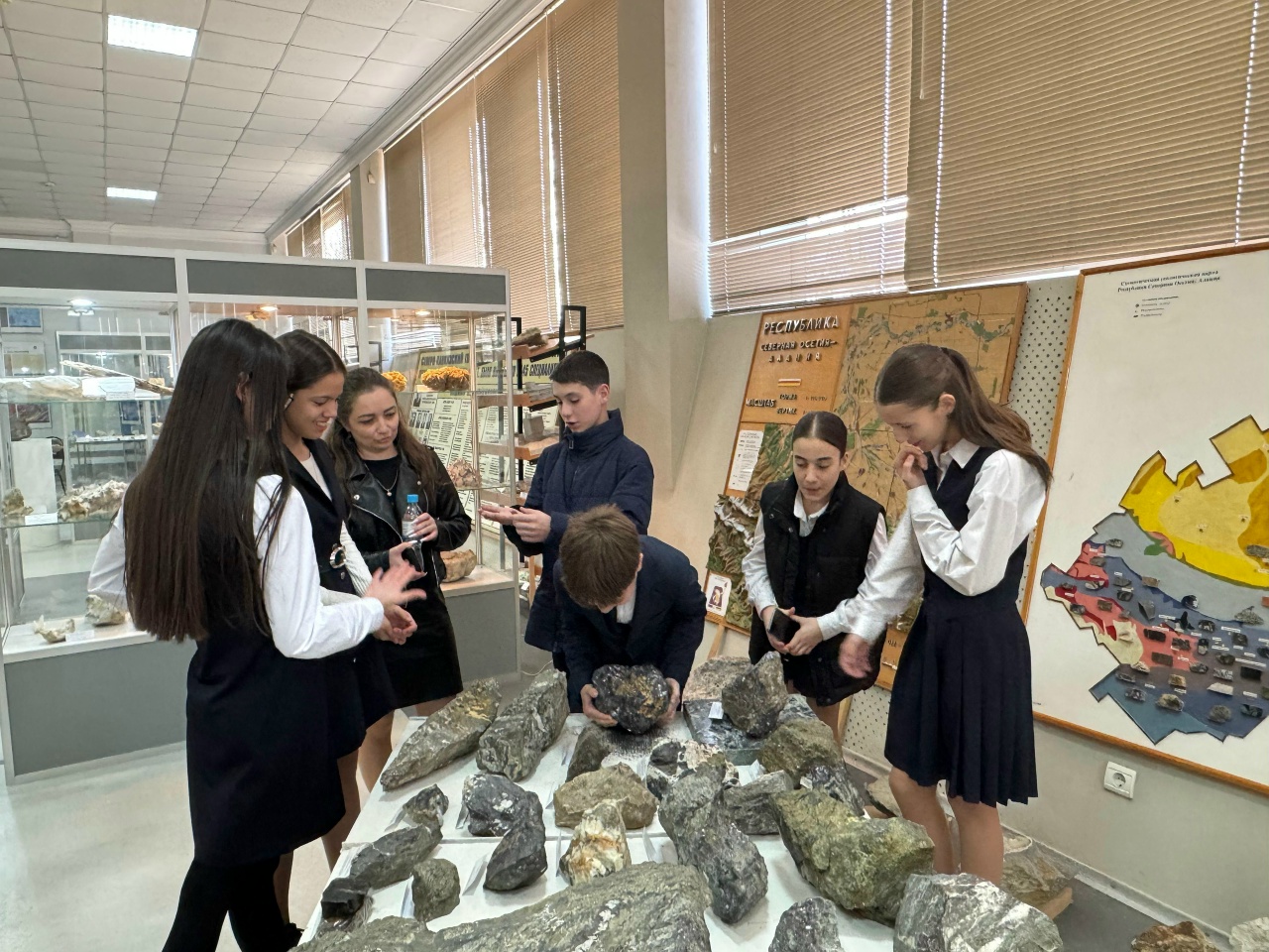 В рамках университетских суббот учащиеся 7″А» класса посетили музей СКГМИ, где школьникам рассказали об уникальных образцах горных пород, минеральных руд и ископаемых остатков. Поразила ребят своей оригинальностью выставка изделий, выполненных студентами- выпускниками.