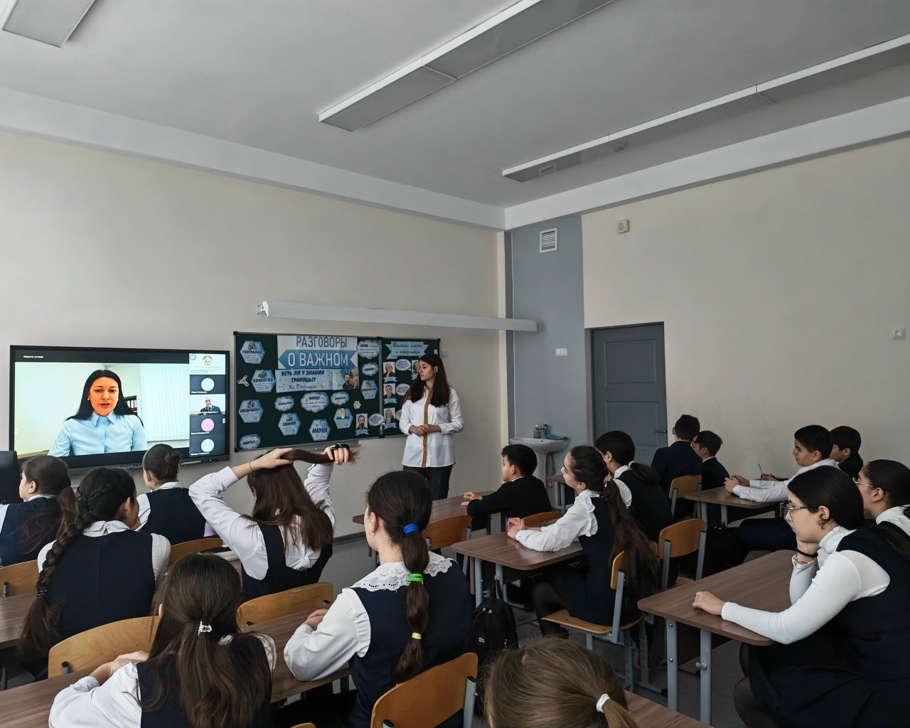 Классный час прошёл совместно с представителями МВД по РСО–Алания начальником отдела Управления по борьбе с киберпреступностью МВД по РСО-Алания подполковником полиции Вадимом Битимировым и начальником отделения по организации деятельности подразделений по делам несовершеннолетних подполковником полиции Гаянэ Петросовой и был посвящён вопросам безопасного и ответственного поведения несовершеннолетних в сети Интернет, профилактике киберпреступлений и предупреждению вовлечения подростков в противоправную деятельность.