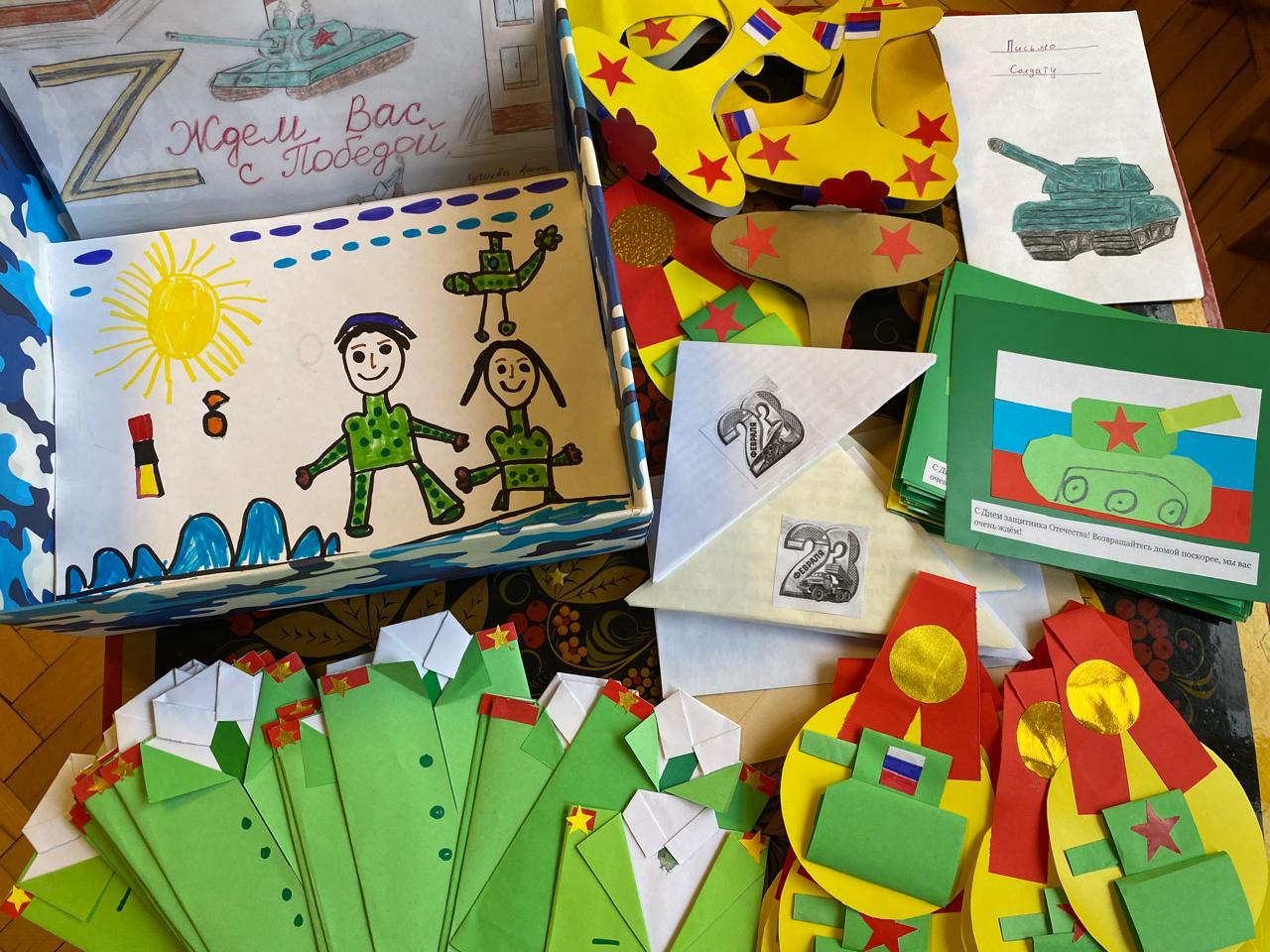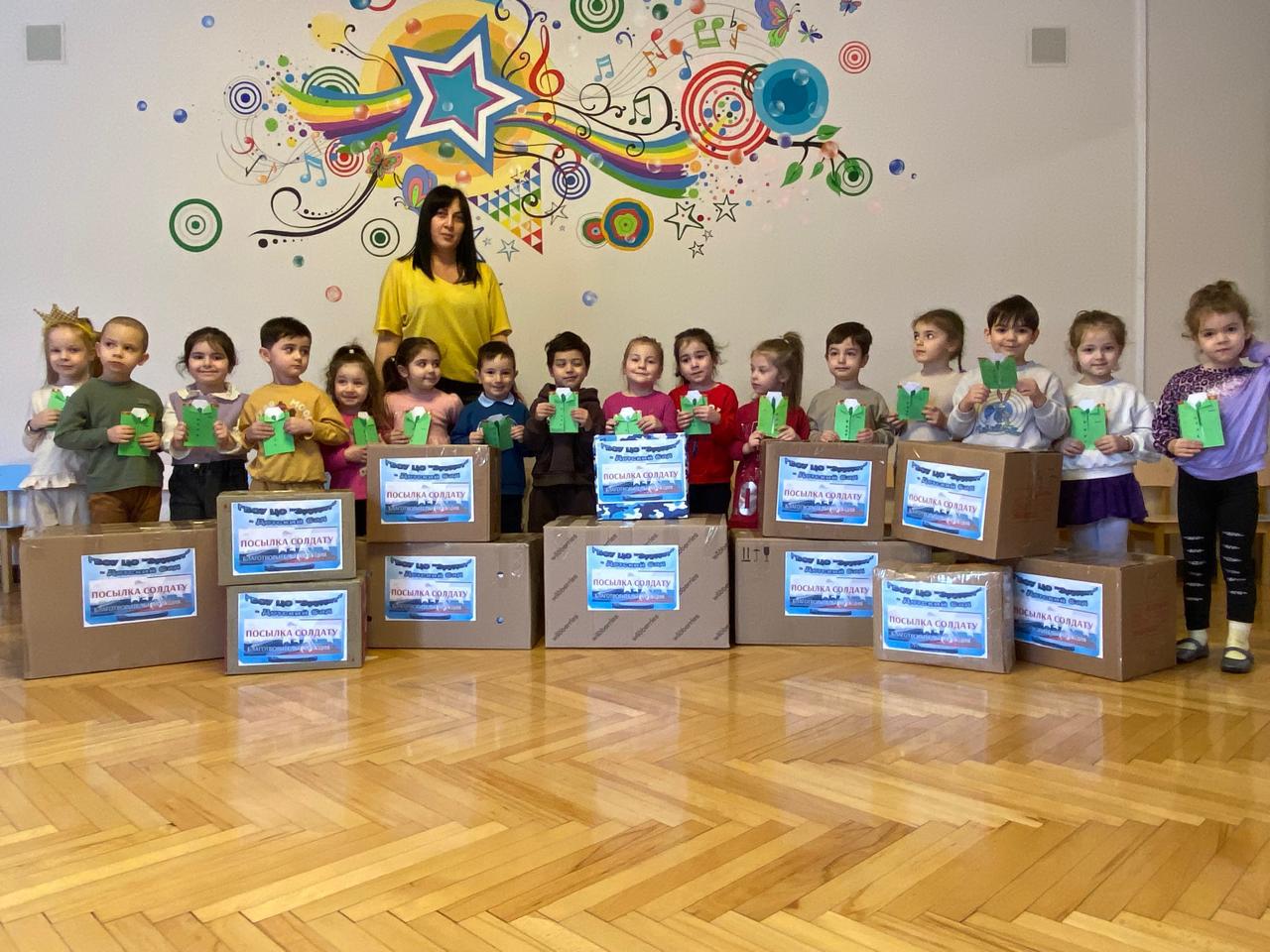 Сотрудники, воспитанники вместе с родителями приняли активное участие: собрали предметы первой необходимости, предметы личной гигиены и продукты питания. Дети своими руками сделали открытки, вместе с родителями написали письма солдатам, наполненные тёплыми словами признательности и глубокой благодарности за мужество и героизм, с пожеланием вернуться к своим семьям живыми, здоровыми и обязательно с победой!