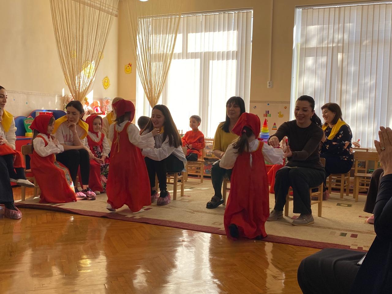 Ребята с родителями в ярких нарядах и платках, рассказывали пословицы и стихи, водили хороводы, старались показать свою смекалку и быстроту в различных играх («Блинчик», «Валенок», «Блинок», «Перенеси блины»,).