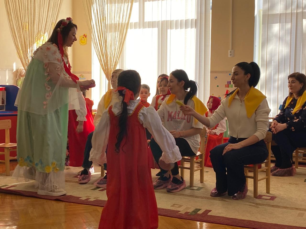 Праздник наш был пропитан народным колоритом: русские народные мелодии и костюмы, пляски и хороводы, игры и забавы. В завершении праздника Весна угощала детей долгожданными ароматными и вкусными блинами.